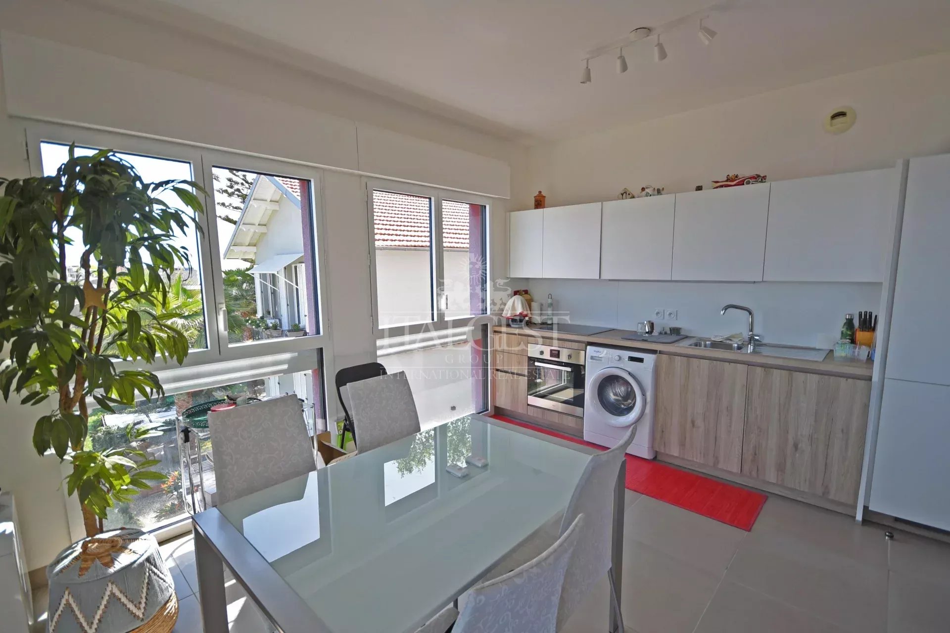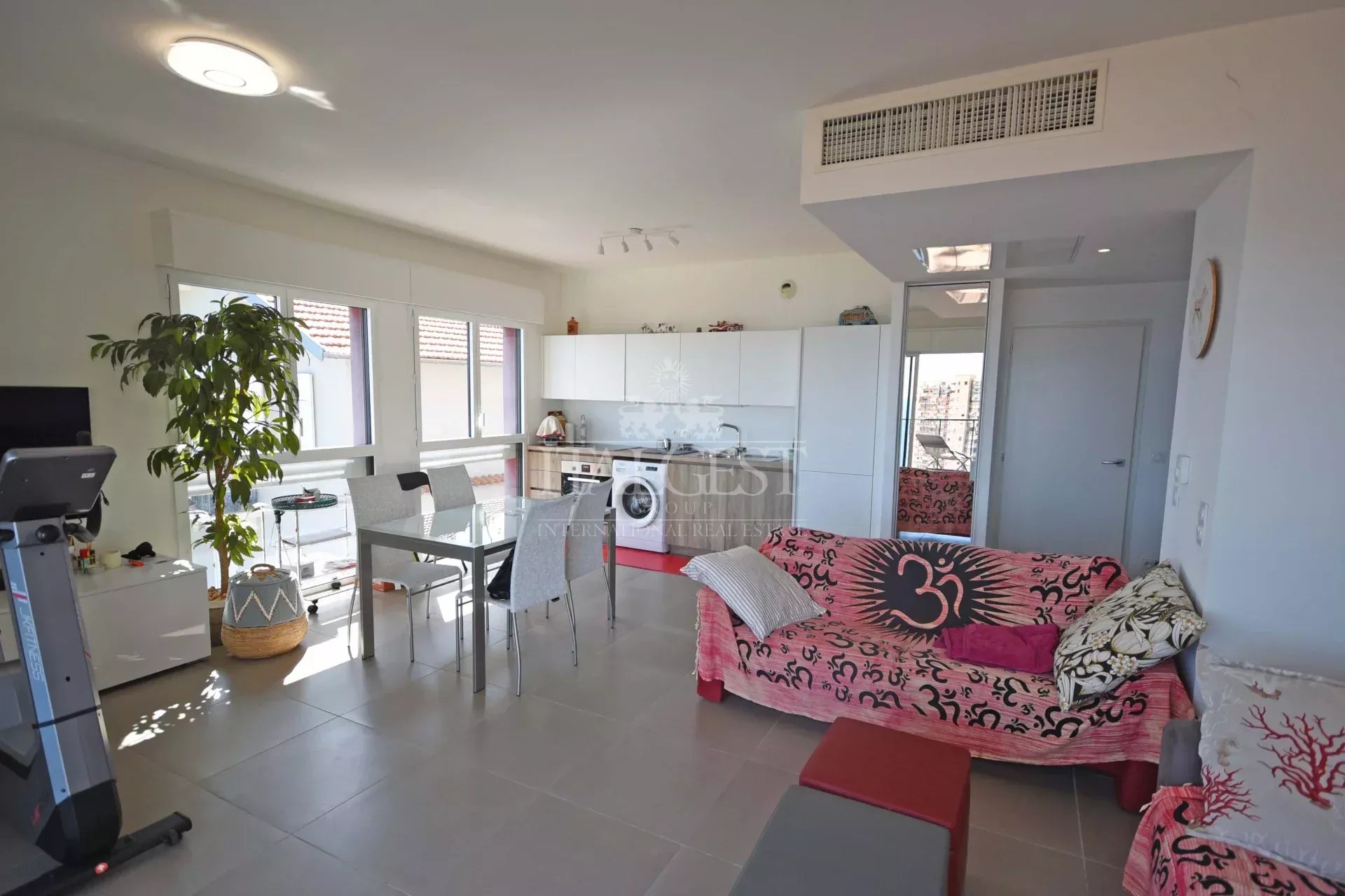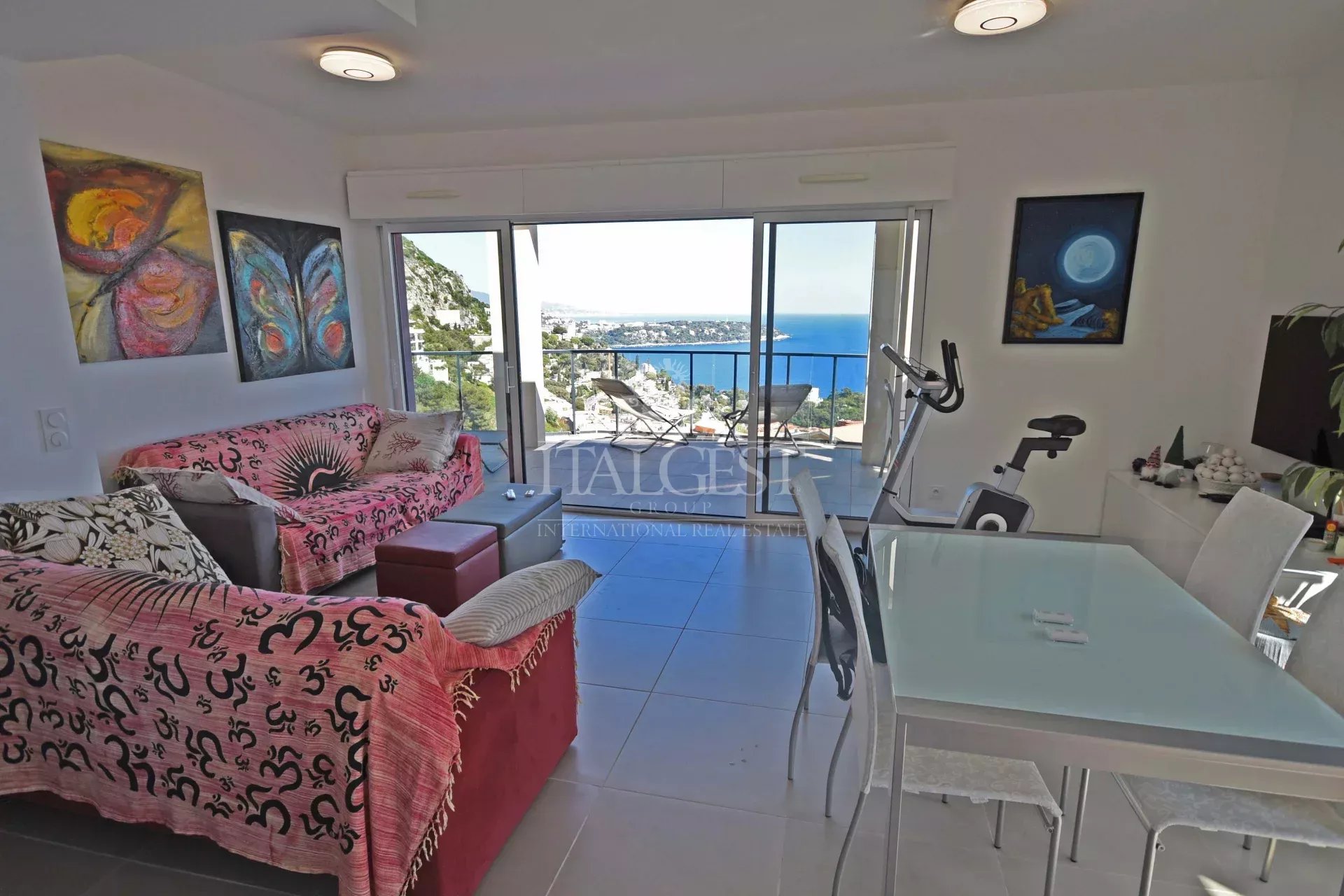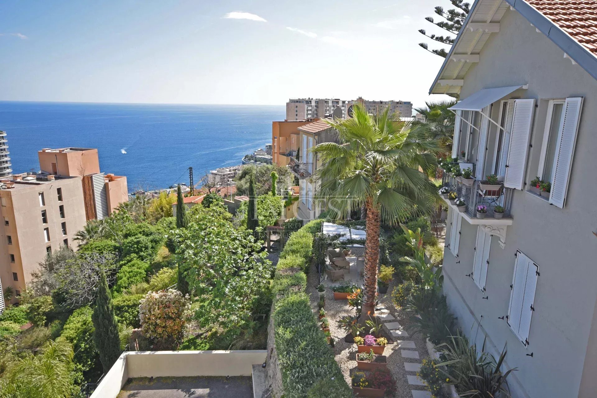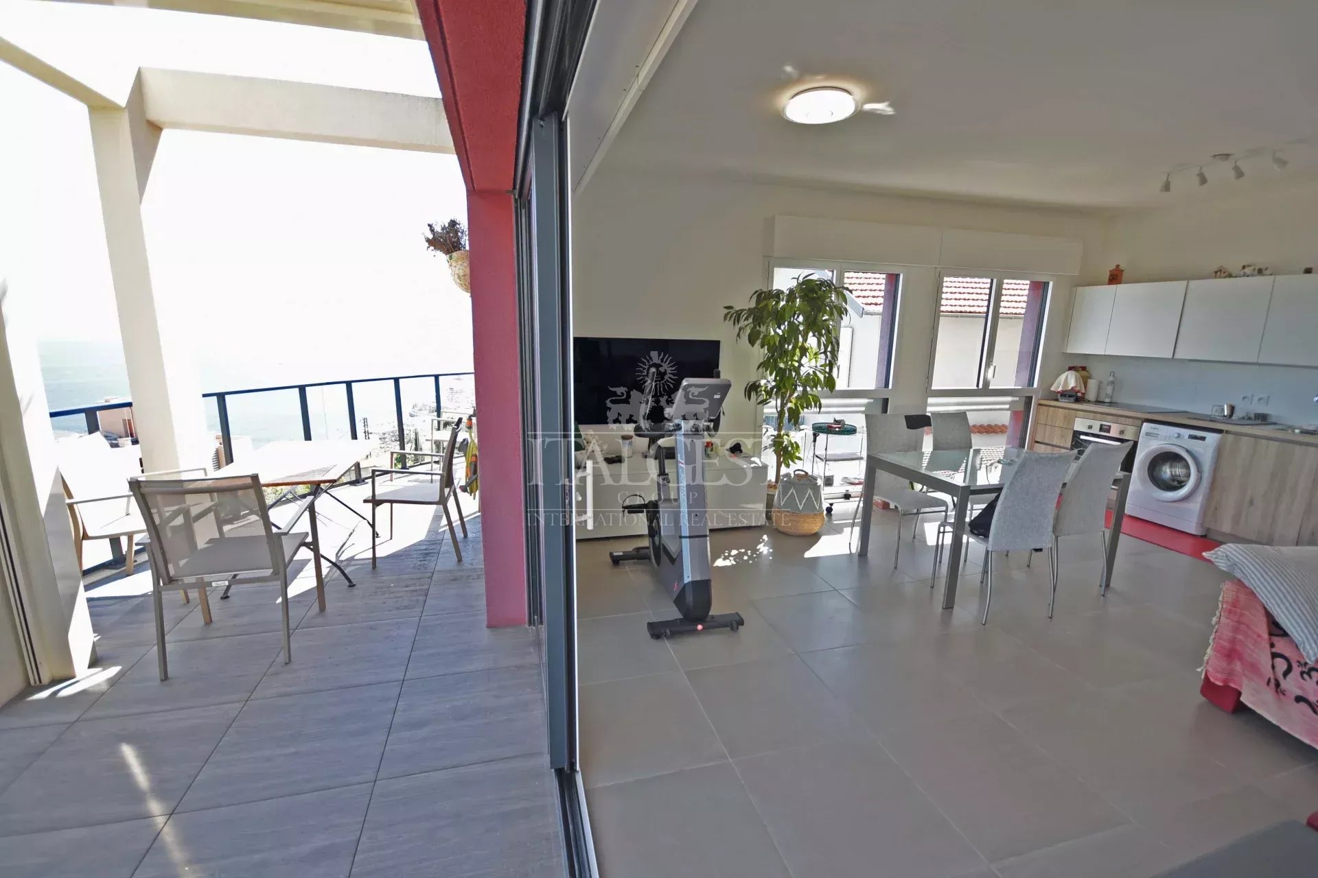 The modern apartment consists of a large corner living room with open-plan kitchen, large windows allowing panoramic views over Monaco and the sea, with access to the terrace, two bedrooms, two full bathrooms plus a guest WC. Air conditioning in every room, bioclimatic pergola on the terrace, two covered private parking spaces and a cellar.