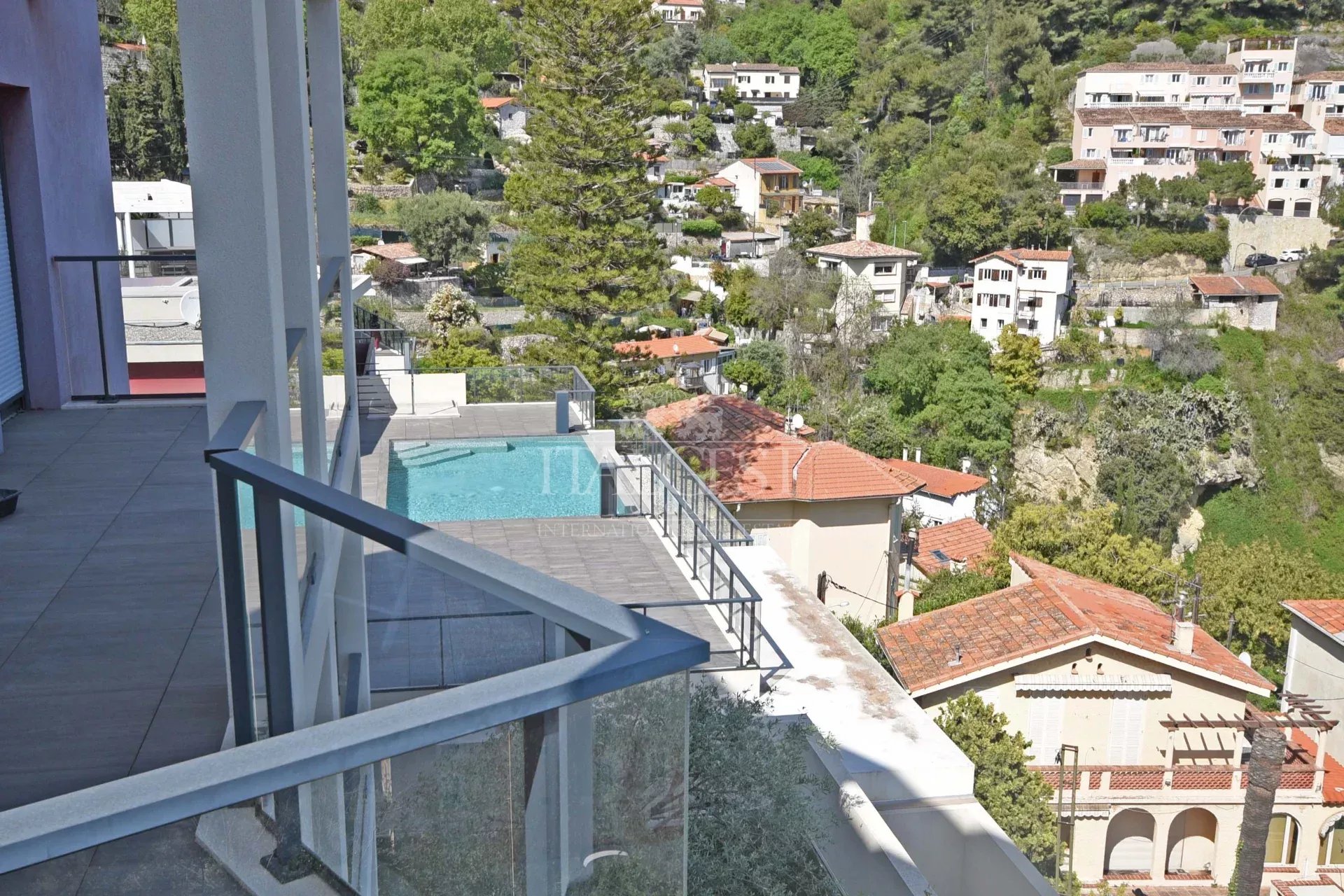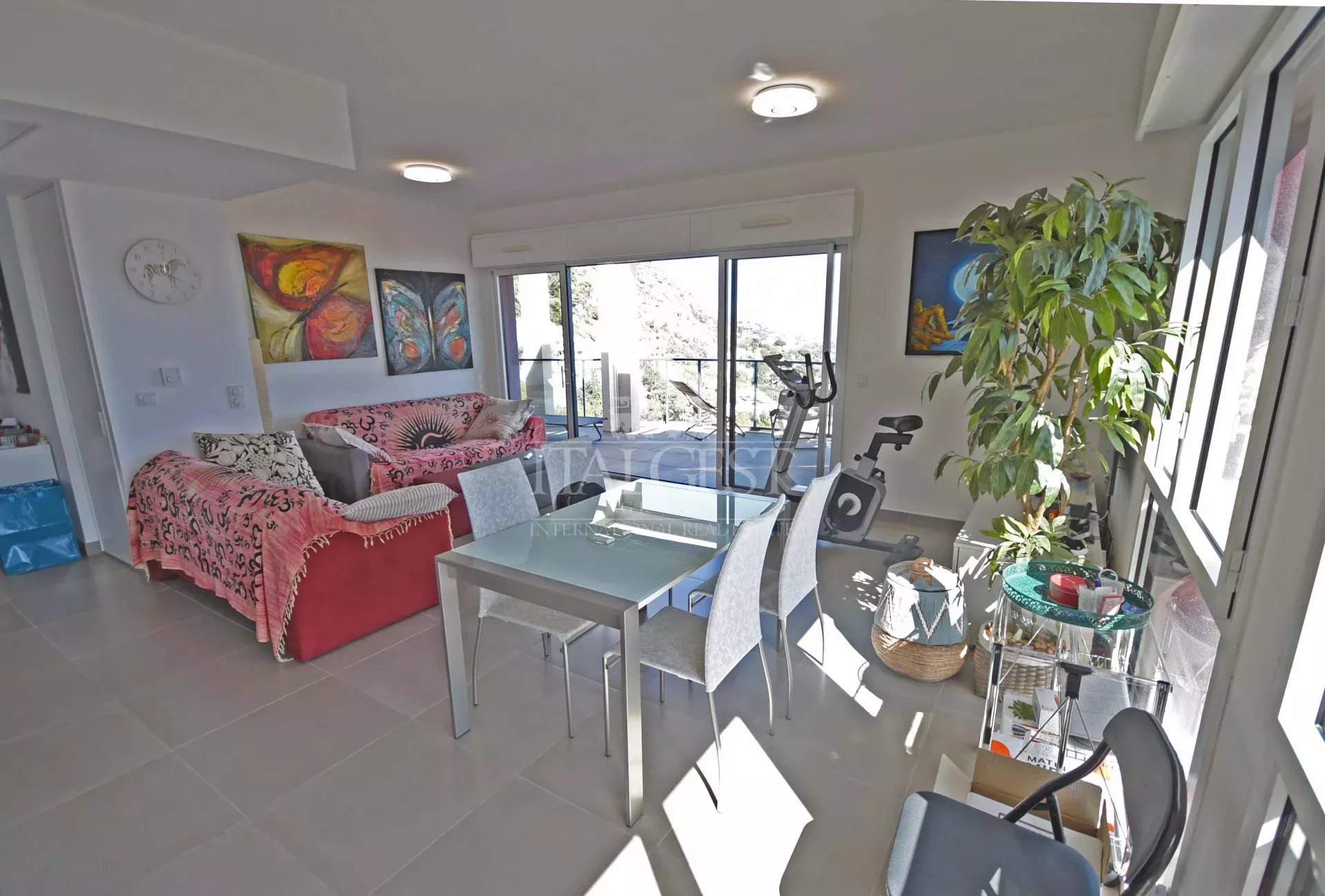 Beausoleil, in one of the most prestigious recently built residences featuring a concierge, rooftop pool and landscaped gardens, magnificent apartment located on the third-to-last floor with triple exposure east, south and west. It offers a 25 sqm panoramic terrace overlooking Monte Carlo and the Mediterranean Sea.