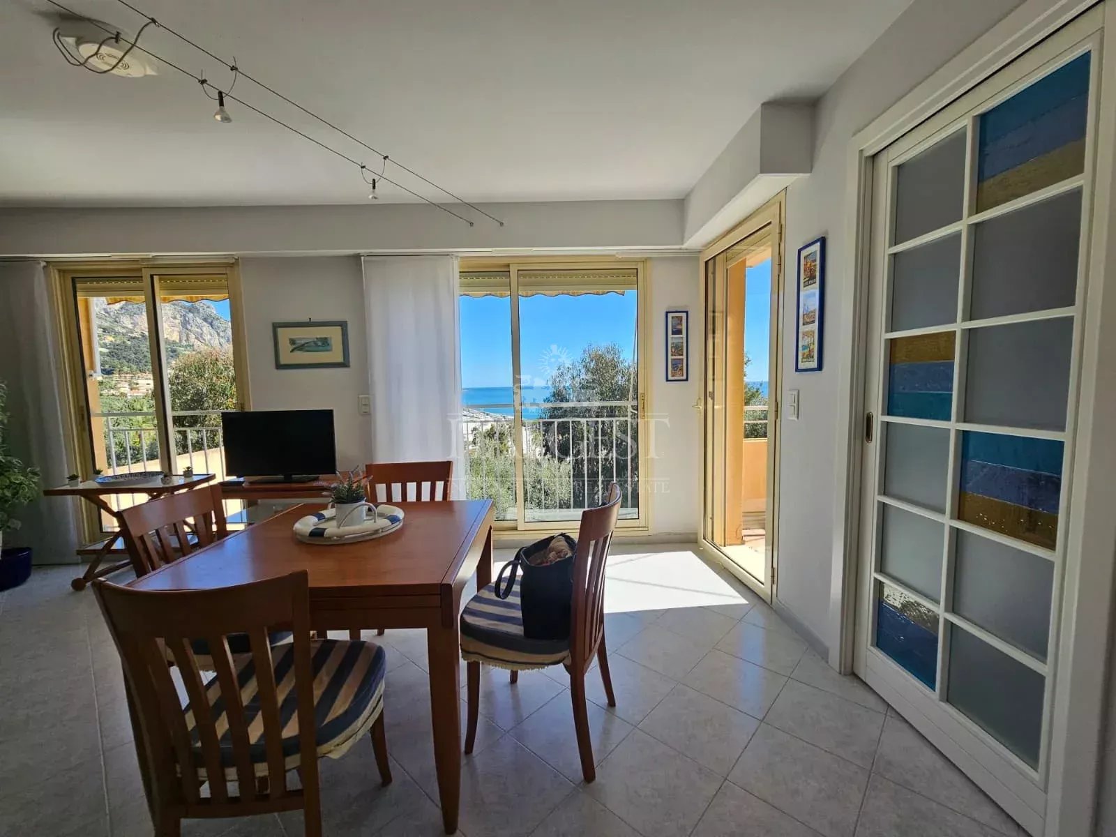 In the prestigious Boulevard de Garavan, one of the most sought‑after and sun‑filled areas of Menton, we present this one‑bedroom apartment with terrace, private internal courtyard and panoramic sea view, located within the renowned residence Les Terrasses du Soleil.